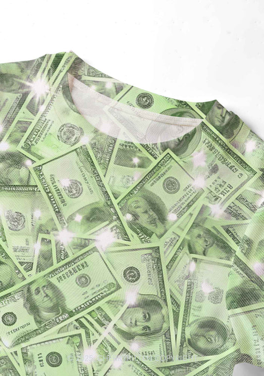 Green Shiny Money Y2K Mesh Crop Top Cherrykitten