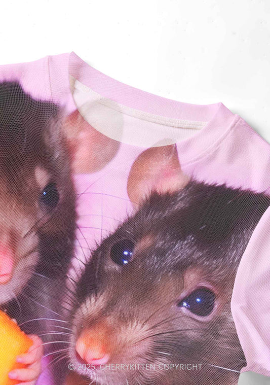 Cheese Rat Y2K Mesh Crop Top Cherrykitten