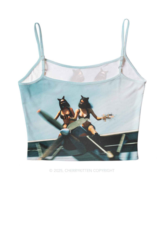Girls Airplane Race Y2K Mesh Cami Tank Cherrykitten