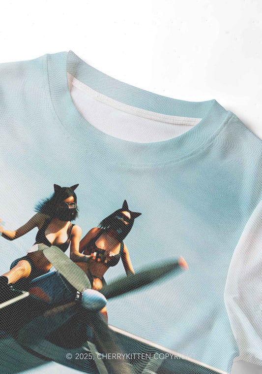 Girls Airplane Race Y2K Mesh Crop Top Cherrykitten