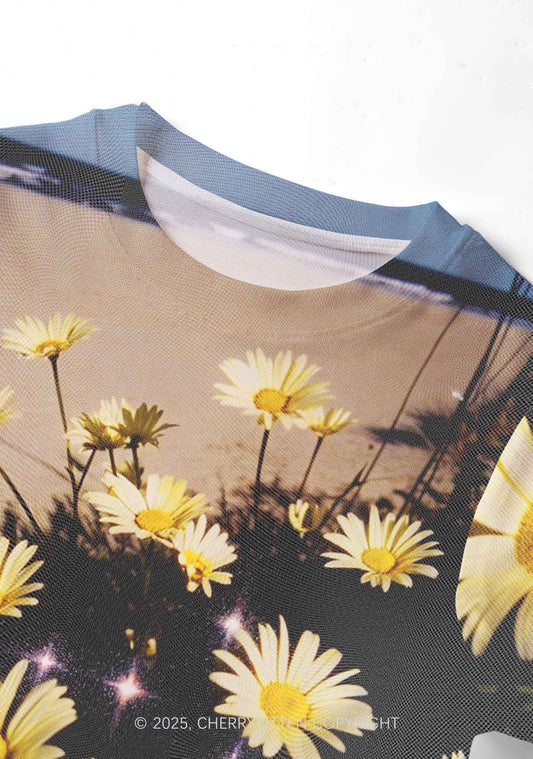 Yellow Daisy Y2K Mesh Crop Top Cherrykitten