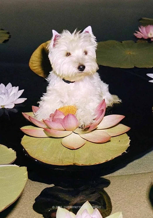 Puppy On Lotus Y2K Print Cami Crop Top Cherrykitten