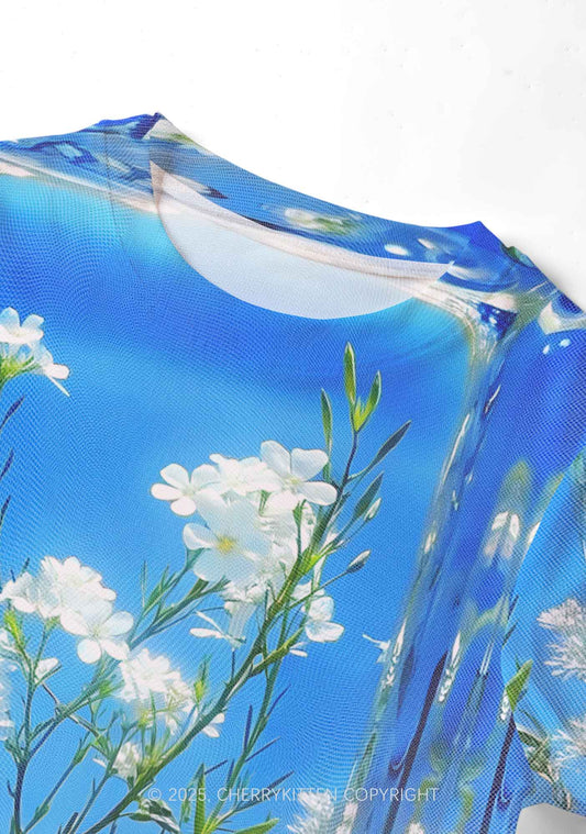 White Flowers Y2K Mesh Crop Top Cherrykitten
