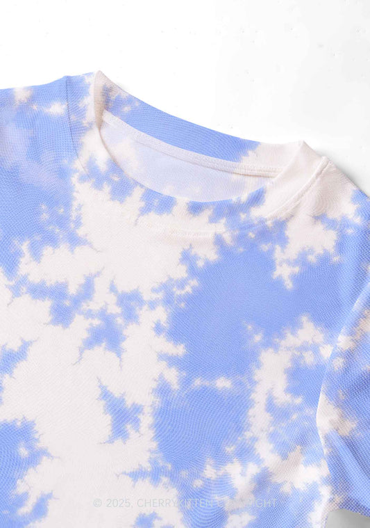 Blue Sky White Clouds Y2K Mesh Crop Top Cherrykitten