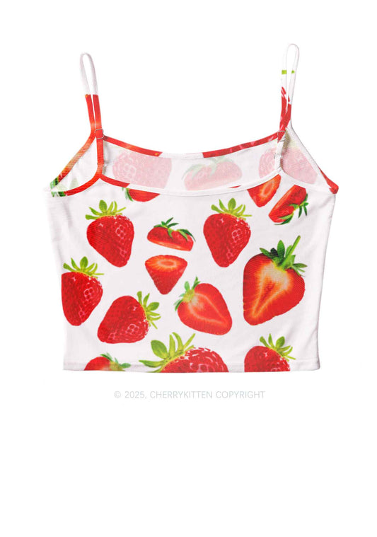 White Strawberry Y2K Mesh Cami Tank Cherrykitten