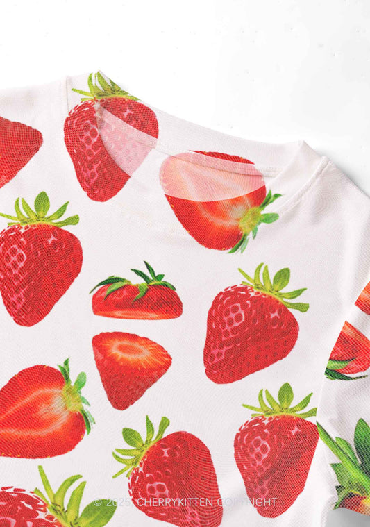 White Strawberry Y2K Mesh Crop Top Cherrykitten