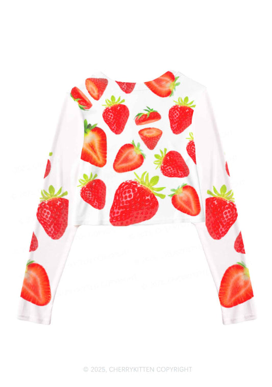 White Strawberry Y2K Mesh Long Sleeve Crop Top Cherrykitten