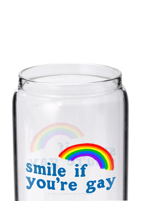 Rainbow Smile Pride Y2K Printed Glass Cup Cherrykitten
