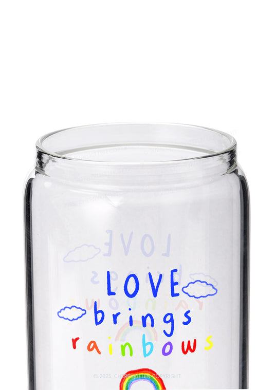 Love Brings Rainbows Pride Y2K Printed Glass Cup Cherrykitten
