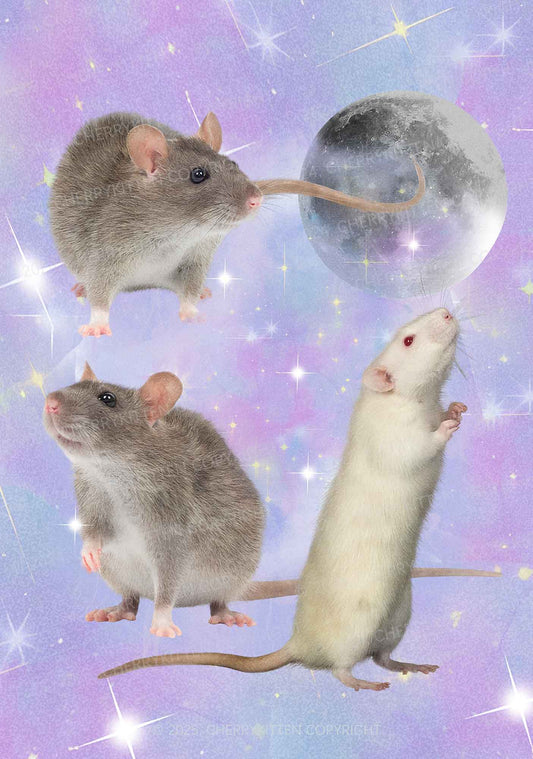 Three Rats Moon Y2K Print Midi Skirt Cherrykitten