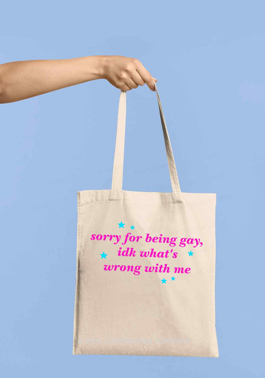 Sorry For Being Gay Pride Y2K Canvas Tote Bag Cherrykitten