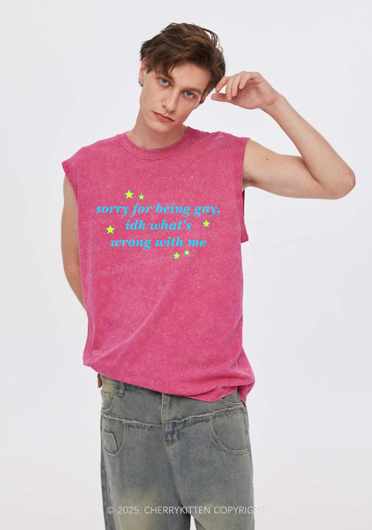 Sorry For Being Gay Pride Y2K Washed Muscle Tank Cherrykitten