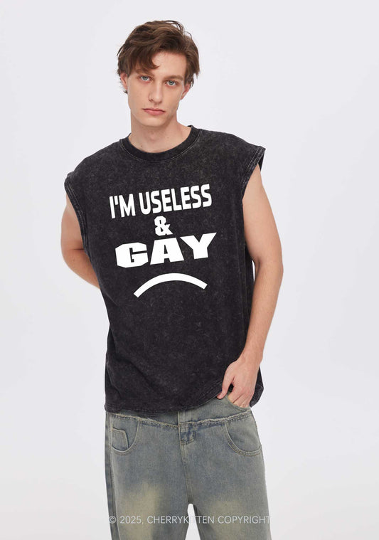 Useless Gay Pride Y2K Washed Muscle Tank Cherrykitten
