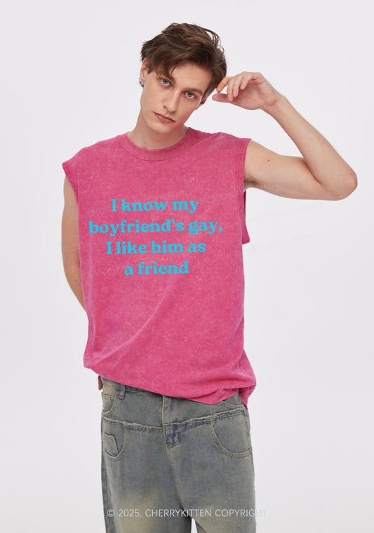 I Know My BF Is Gay Pride Y2K Washed Muscle Tank Cherrykitten