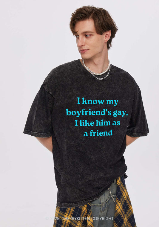 I Know My BF Is Gay Pride Y2K Shirts Washed Tee Cherrykitten