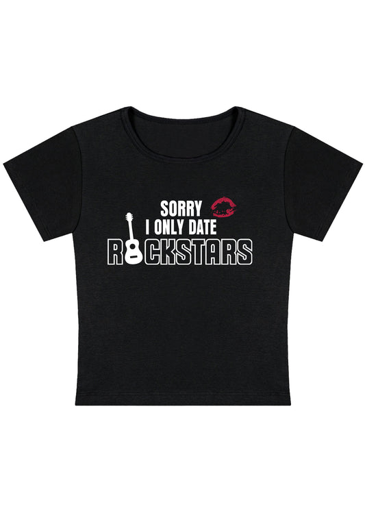 I Only Date Rockstars Lip Print Y2K Baby Tee