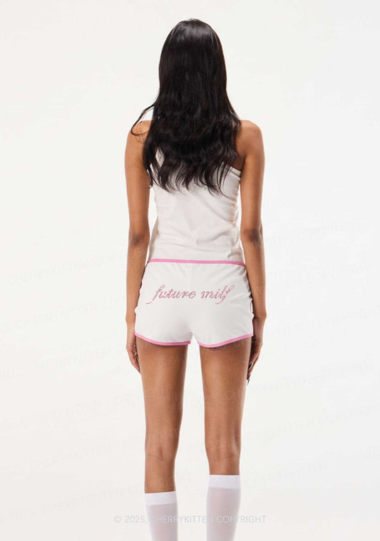 Rhinestone Pink Future Mxxf Y2K Drawstring Mini Shorts Cherrykitten