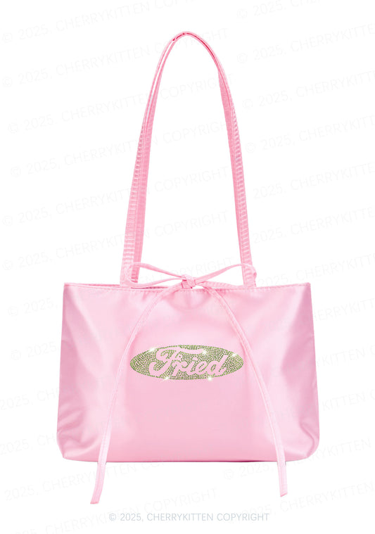 Rhinestone Pink Future Mxxf Y2K Satin Bags Cherrykitten
