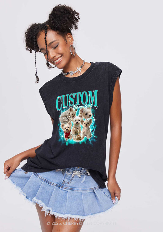 Custom Sparkle Dog Photo Y2K Washed Muscle Tank Cherrykitten