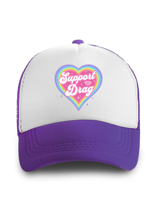 Rainbow Heart Support Drag Lip Print Trucker Hat
