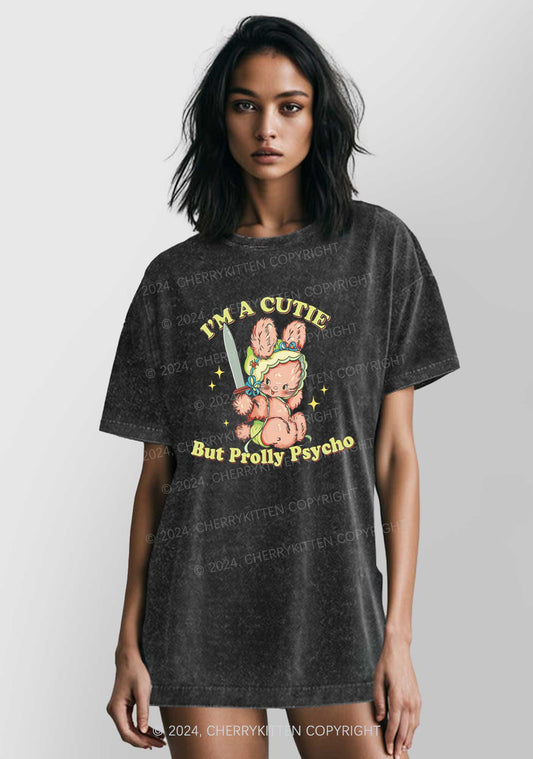 Cutie But Prolly Psycho Y2K Washed Tee Cherrykitten
