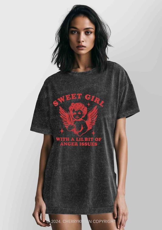 Sweet Girl With Anger Issues Y2K Washed Tee Cherrykitten