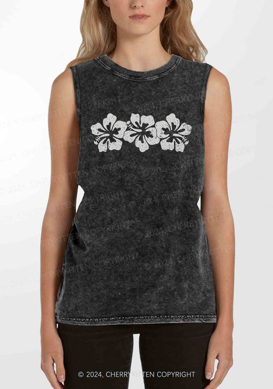 Vintage Hibiscus Flower Y2K Washed Tank Cherrykitten