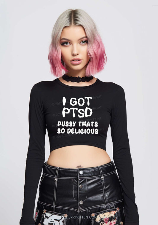 I Got Delicious PTSD Long Sleeve Crop Top Cherrykitten