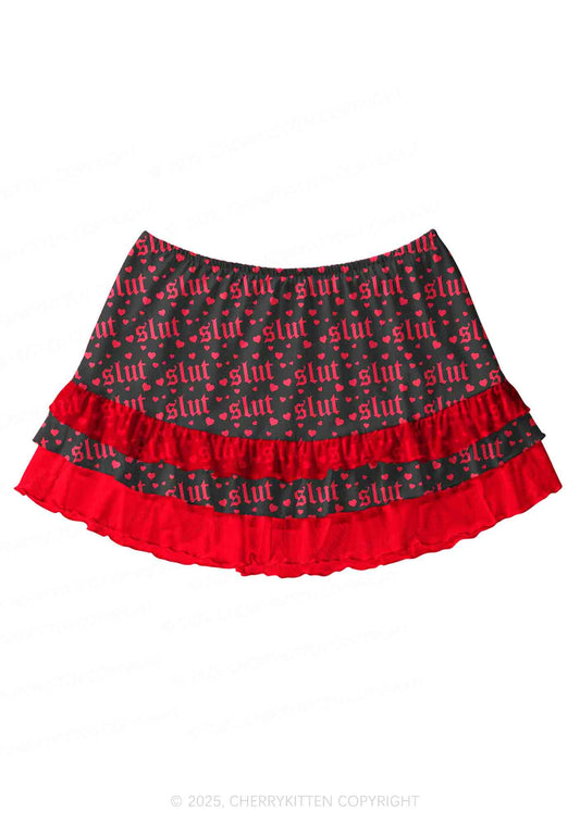 Black Slxt Y2K Print Mini Layered Skirt Cherrykitten