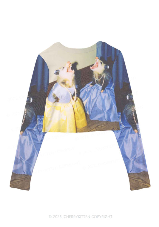 Princess Rats Y2K Mesh Long Sleeve Crop Top Cherrykitten