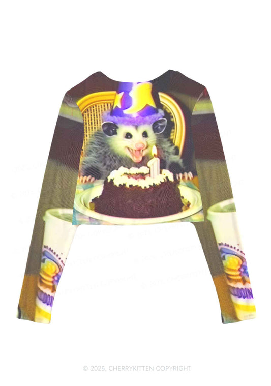Birthday Rat Y2K Mesh Long Sleeve Crop Top Cherrykitten