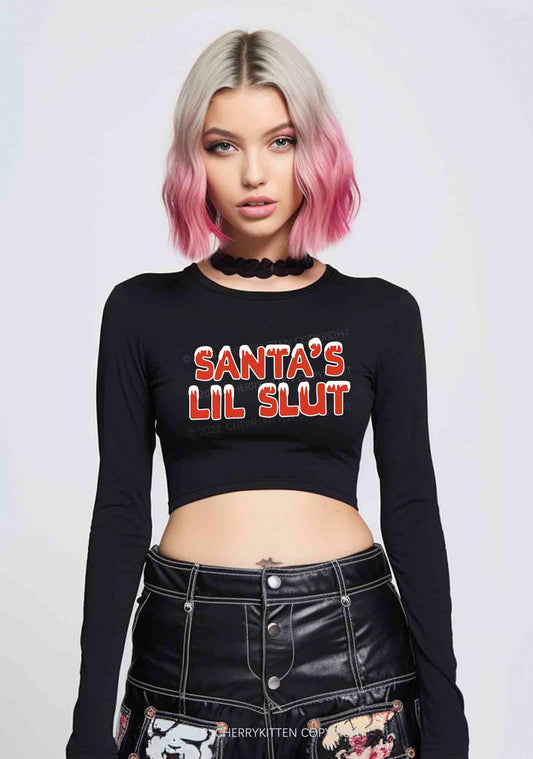 Santa's Lil Slxt Y2K Long Sleeve Crop Top Cherrykitten