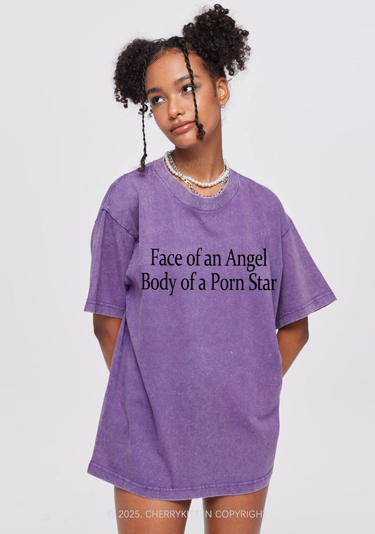 Face Of An Angel Body Of A Pxrn Star Y2K Shirts Washed Tee Cherrykitten