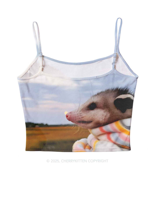 Raccoon With Headphones Y2K Mesh Cami Tank Cherrykitten