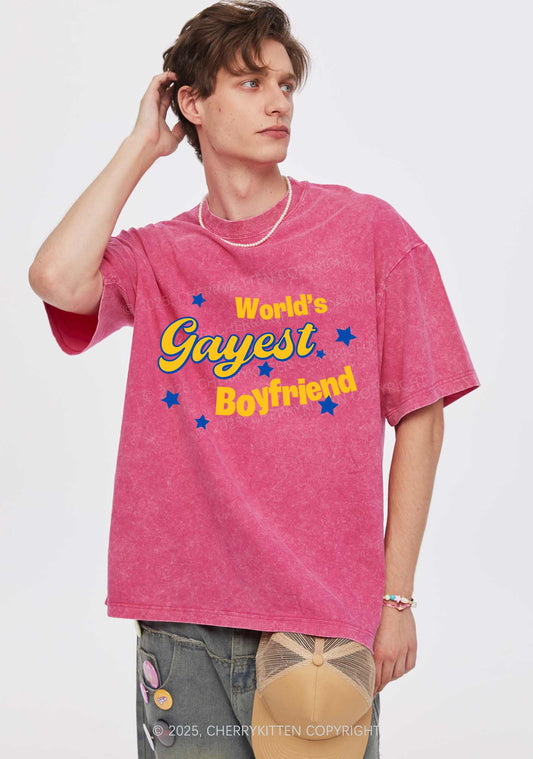Worlds Gayest Boyfriend Pride Y2K Shirts Washed Tee Cherrykitten