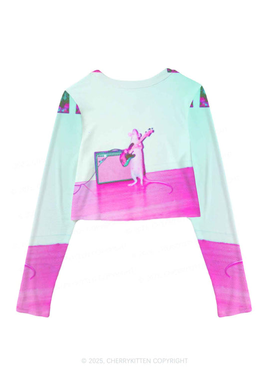 Rat Guitarist Y2K Mesh Long Sleeve Crop Top Cherrykitten