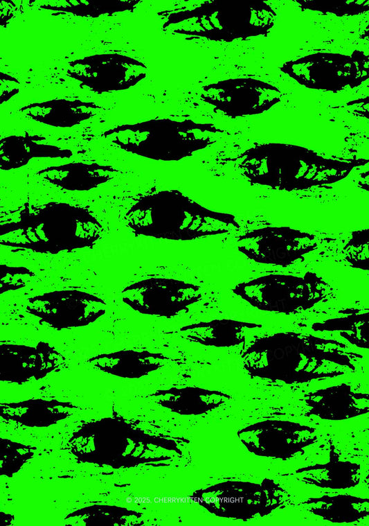 Eyes On Bright Green Y2K Mesh Long Sleeve Crop Top Cherrykitten