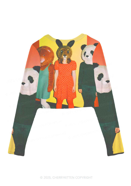 Rabbit Mask Girl Y2K Mesh Long Sleeve Crop Top Cherrykitten