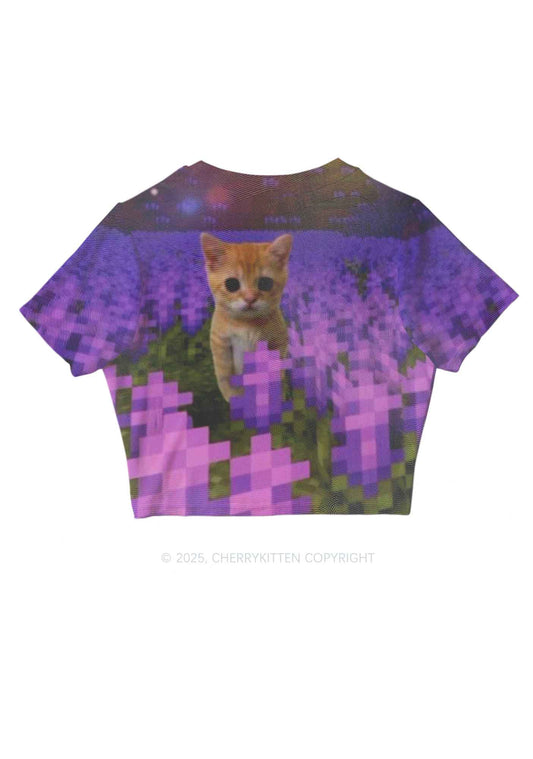Lavender Kitten Y2K Mesh Crop Top Cherrykitten