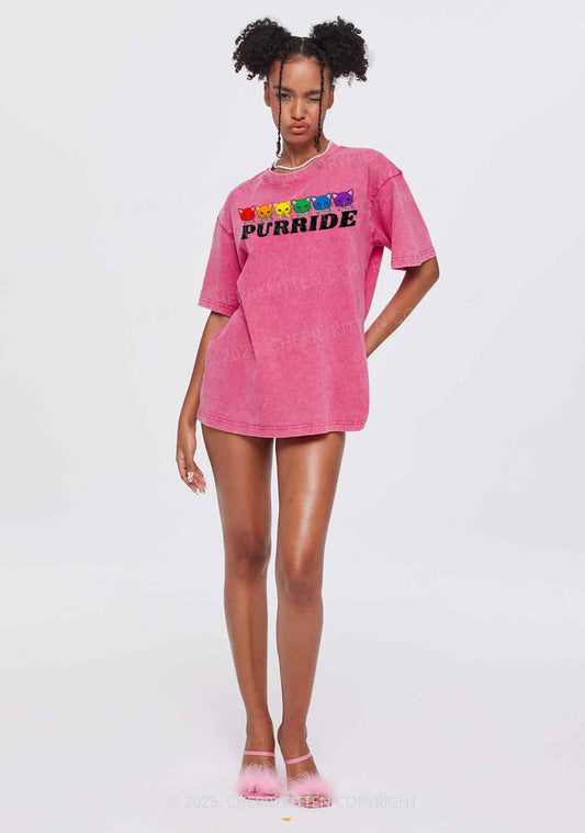 Purride Cat Pride Y2K Shirts Washed Tee Cherrykitten