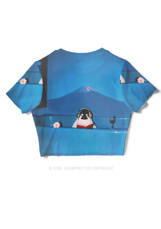 Penguin Reading Book Y2K Mesh Crop Top Cherrykitten