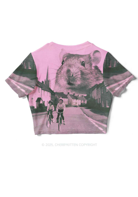 Rats with Doll Y2K Mesh Crop Top Cherrykitten