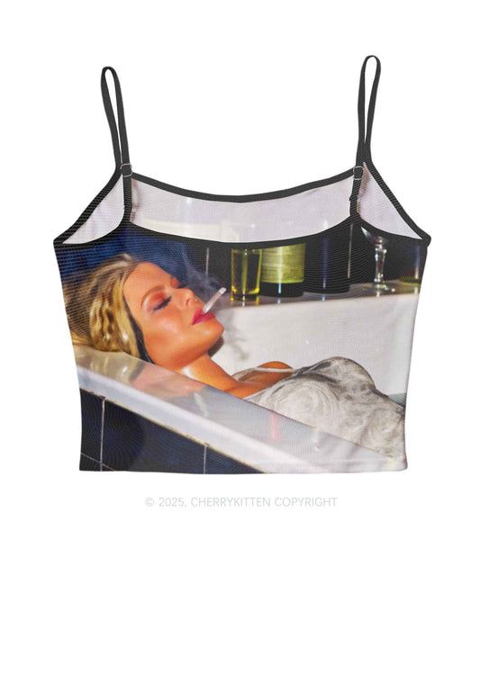 Smoking Woman Y2K Mesh Cami Tank Cherrykitten