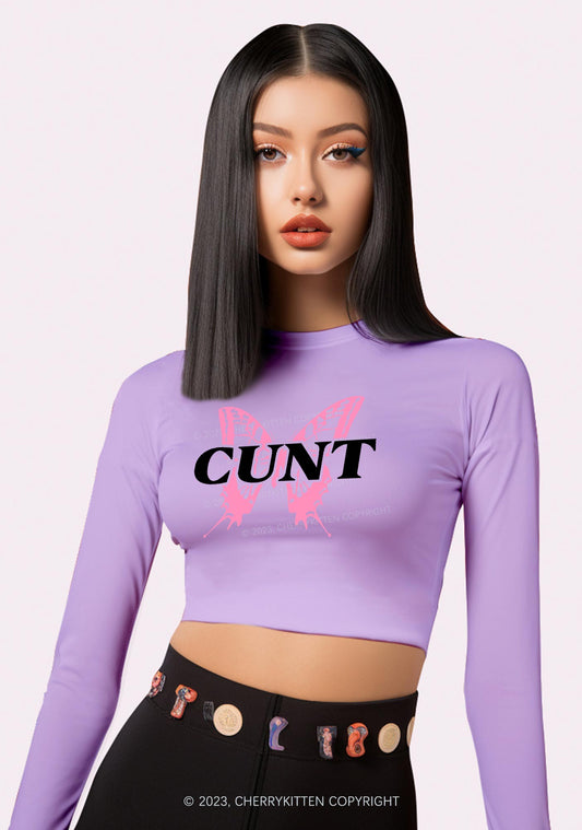Cunt Butterfly Long Sleeve Crop Top Cherrykitten