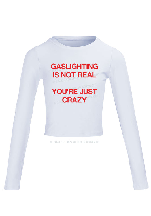 Gaslighting Not Real Long Sleeve Crop Top Cherrykitten