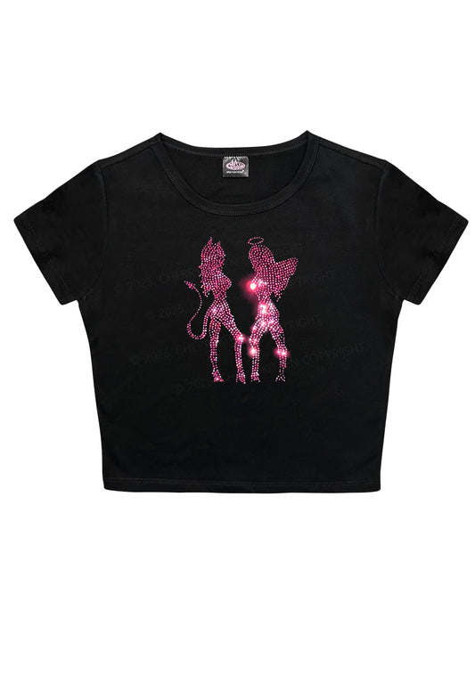 Rhinestone Dancing Girls Y2K Baby Tee Cherrykitten