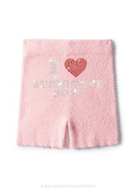 Rhinestone I Love S Boys Y2K Fluffy Shorts Cherrykitten