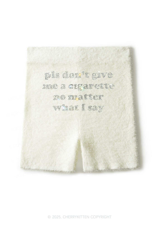 Rhinestone Dont Give Me Cigarette Y2K Fluffy Shorts Cherrykitten