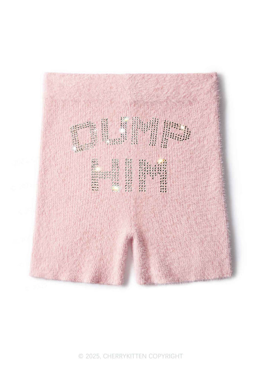Rhinestone Dump Him Y2K Fluffy Shorts Cherrykitten