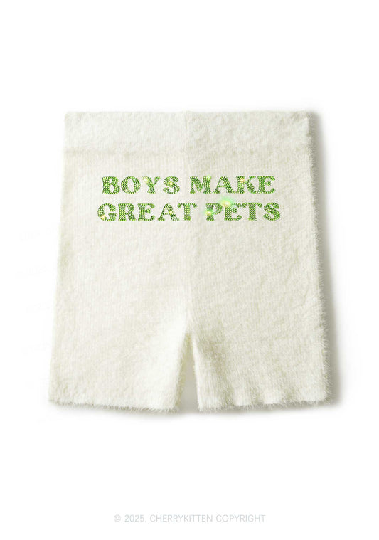 Rhinestone Boys Make Gr8 Pets Y2K Fluffy Shorts Cherrykitten